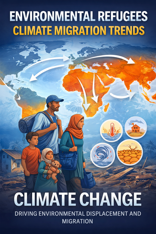Environmental change is increasingly shaping global migration patterns. Rising sea levels, severe storms, prolonged droughts, and land degradation are forcing millions of people to leave their homes in search of safer environments and better livelihoods. These displaced populations are often referred to as environmental refugees or climate migrants.